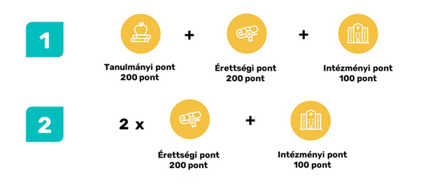 Az érettségi pontokat főszabályként két érettségi vizsgatárgy százalékos eredménye alapján kell kiszámítani. Ezen érettségi vizsgatárgyak körét a felsőoktatási intézmények határozzák meg.